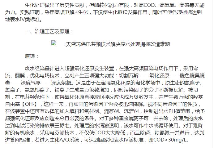 河南網(wǎng)轉(zhuǎn)載:天盛環(huán)保電芬頓技術(shù)解決廢水處理提標(biāo)改造難題