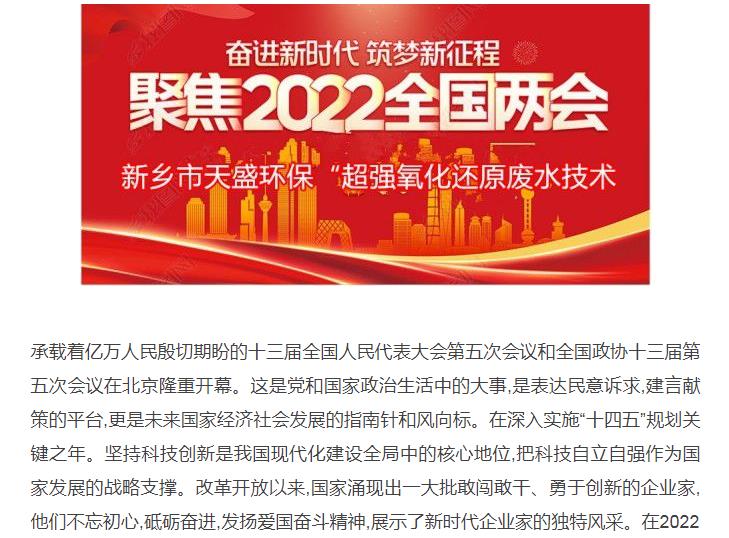 中國高新技術網(wǎng)發(fā)布:《關注:解碼科技創(chuàng)新》——新鄉(xiāng)市天盛環(huán)?!俺瑥娧趸€原廢水處理技術”
